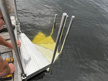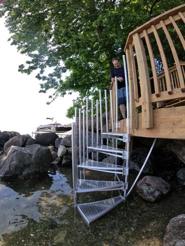 Video of the Spin Ladder off the end of a deck into the lake with custom brace mounting underneath for full stability!